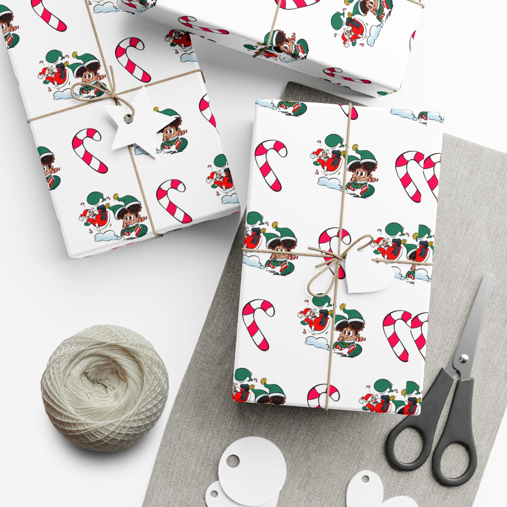 Make your gifts as adorable (and chaotic) as the holidays themselves with Santa’s Little Wrapper — the Beware of Toddler wrapping paper by George Gant! Featuring the mischievous toddler-elf sending Santa flying amid candy canes and giggles, this pattern perfectly captures the “joyful mayhem” of Christmas morning.